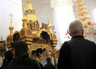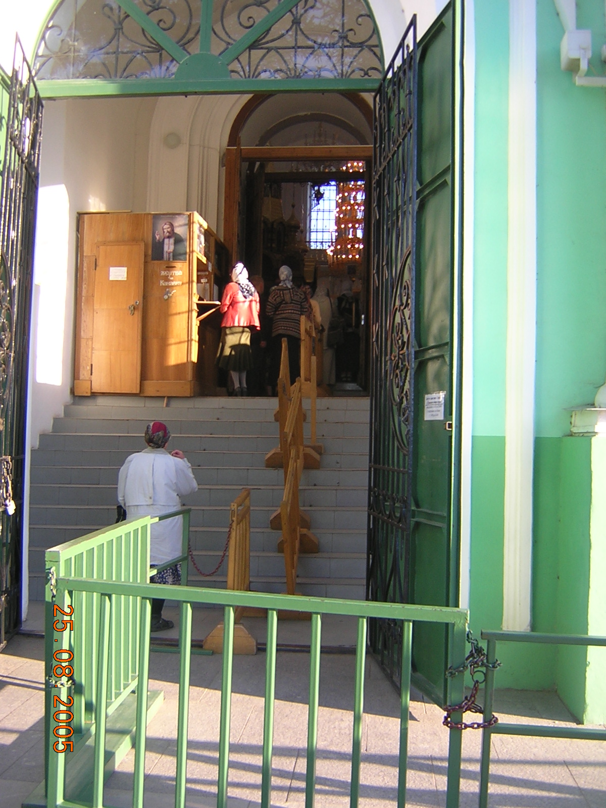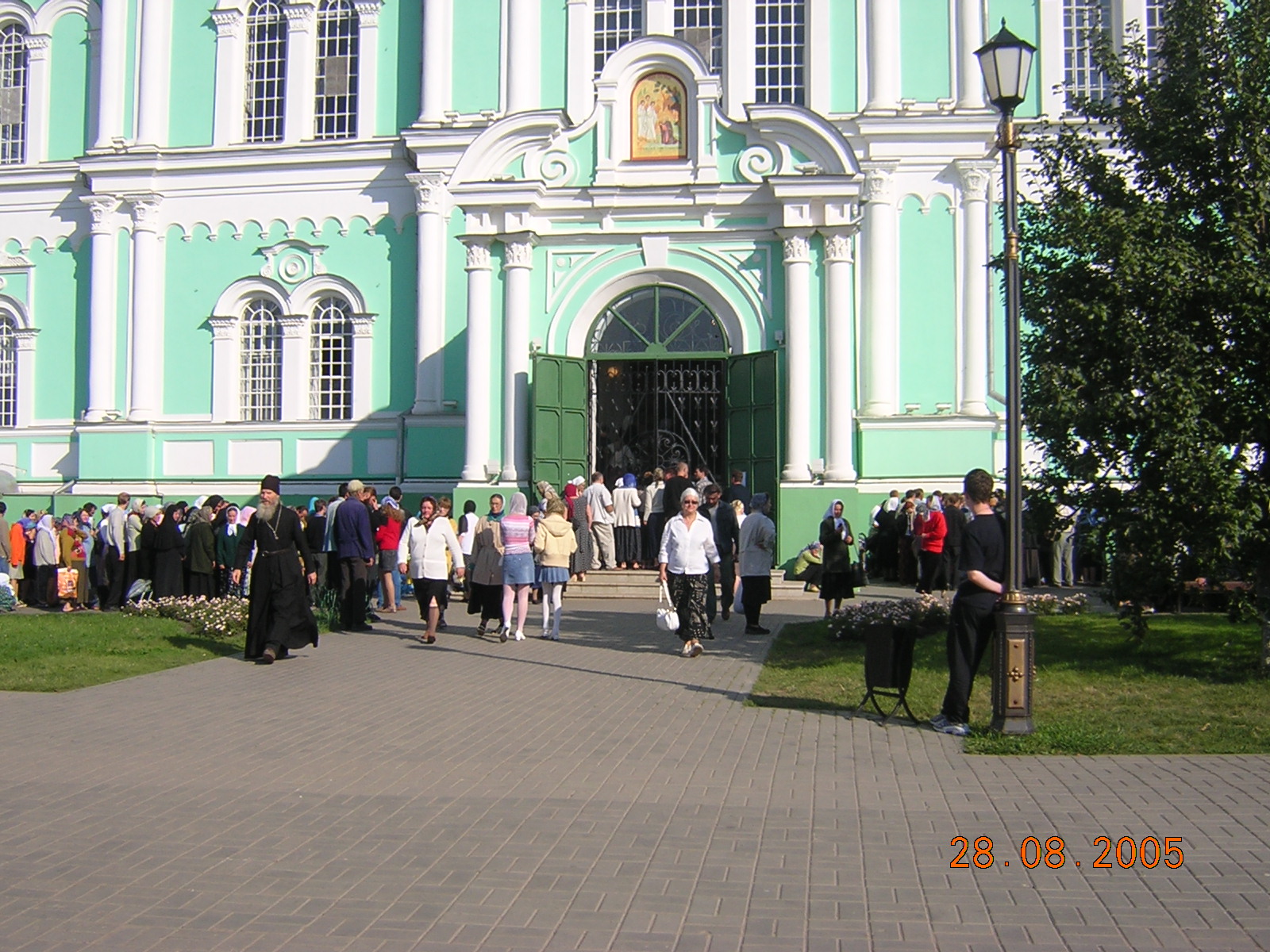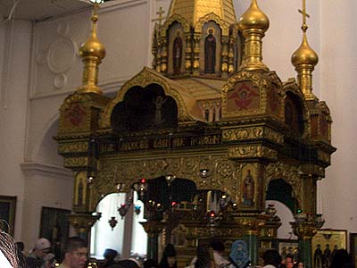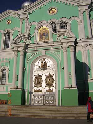 Рака с мощами Серафима Саровского. Северный вход в Троицкий собор ведет к |