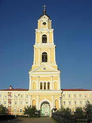 Казанский храм и колокольня. Колокольня целиком. Вид от входа в монастырь. |