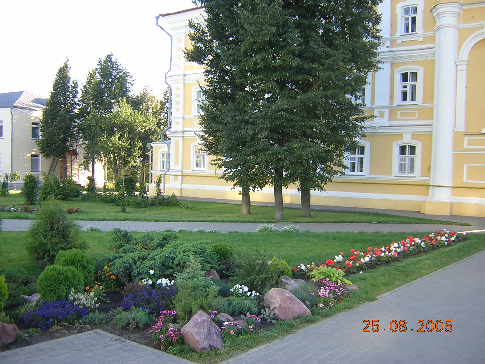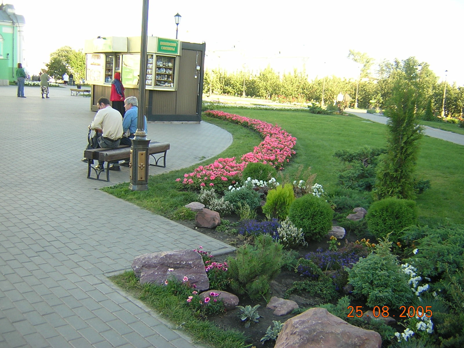 Перед колокольней. В 2000 году здесь была цветочная клумба. |