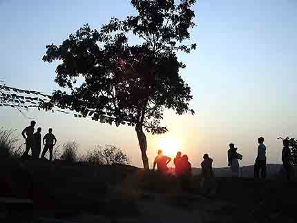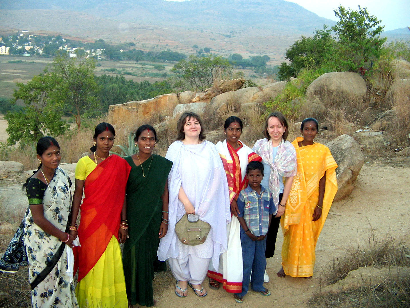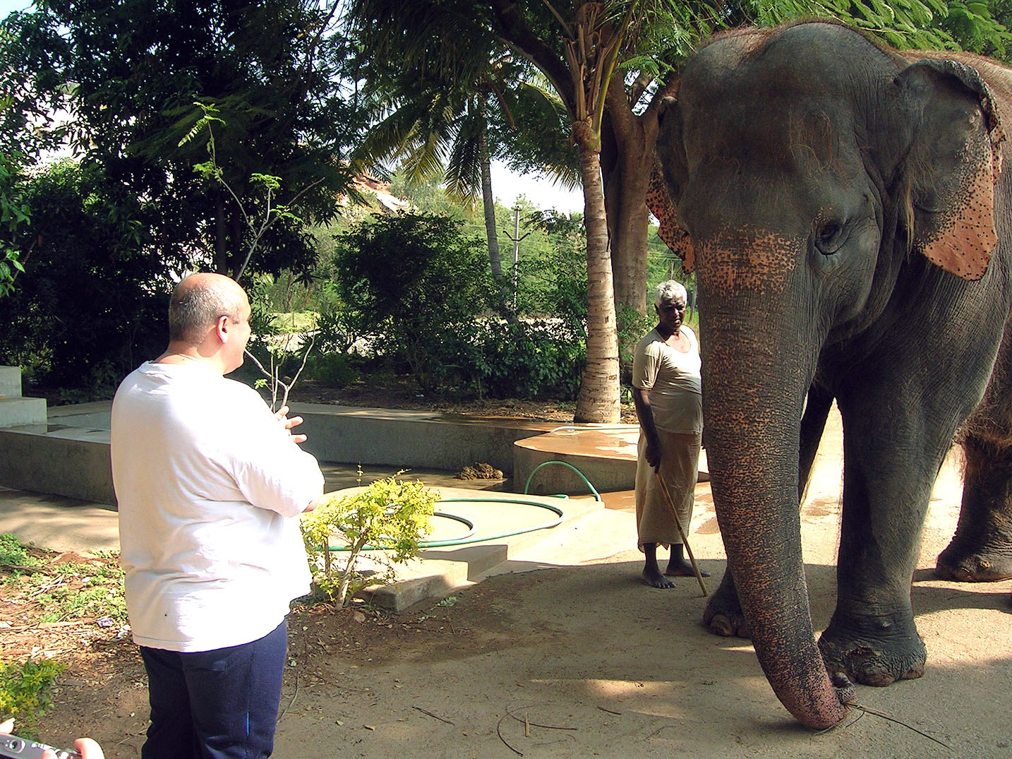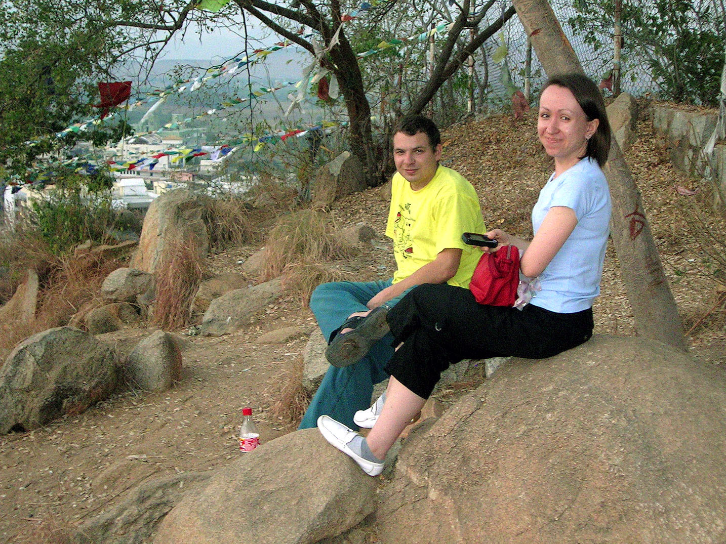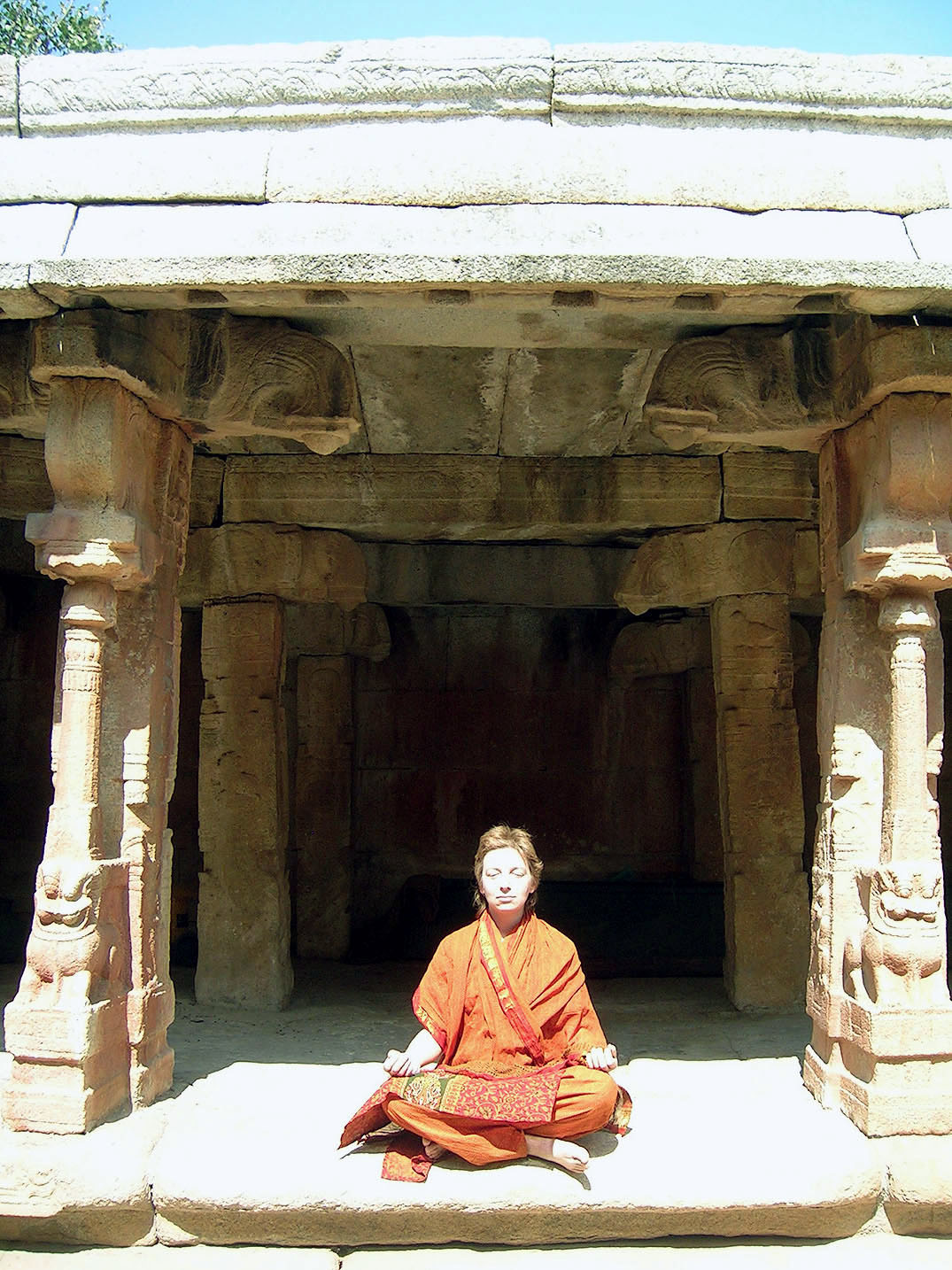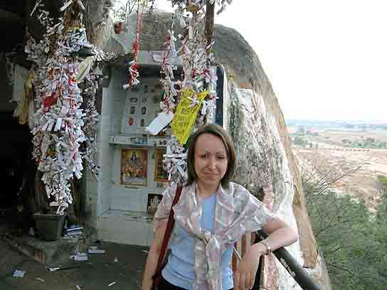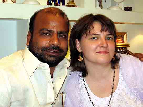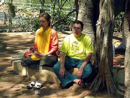 Света и Денис по деревом медитации. Сатья Саи Баба лично посадил это дерево и закопал в его корнях биметаллическую пластину, способствующую правильному состоянию медитации.