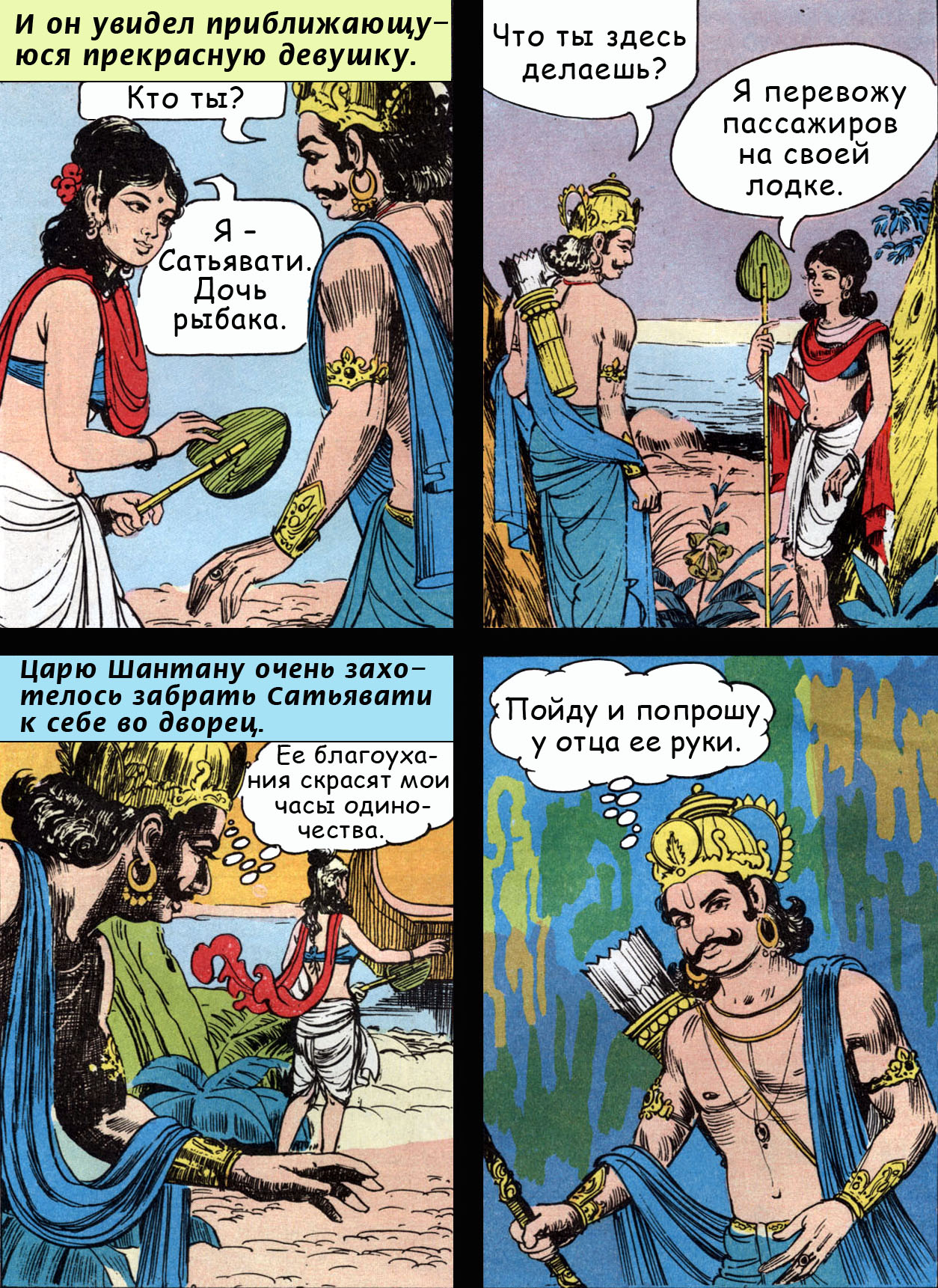 - Я дочь рыбака, - ответила она, - и мой отец - повелитель рыбаков. Он очень хороший человек и по его велению я работаю паромщицей, перевожу желающих на ту сторону Ямуны.