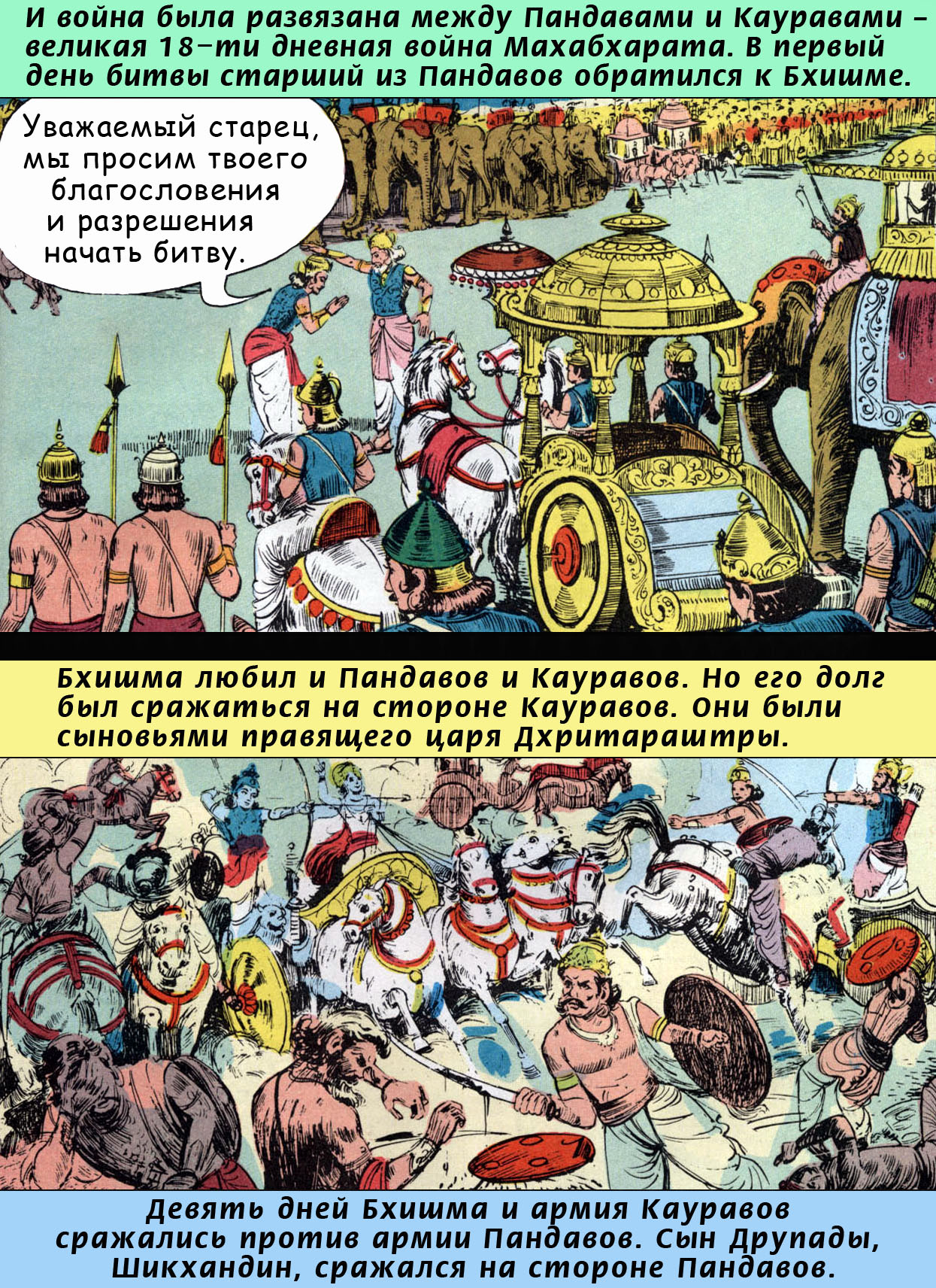 - Бхишма! Бхишма! - в восхищении кричали все. Бхишма же - отныне Деваврата был известен под этим именем - повернулся к прославившейся таким образом Сатьявати и сказал: