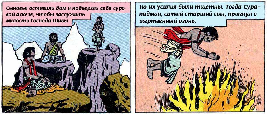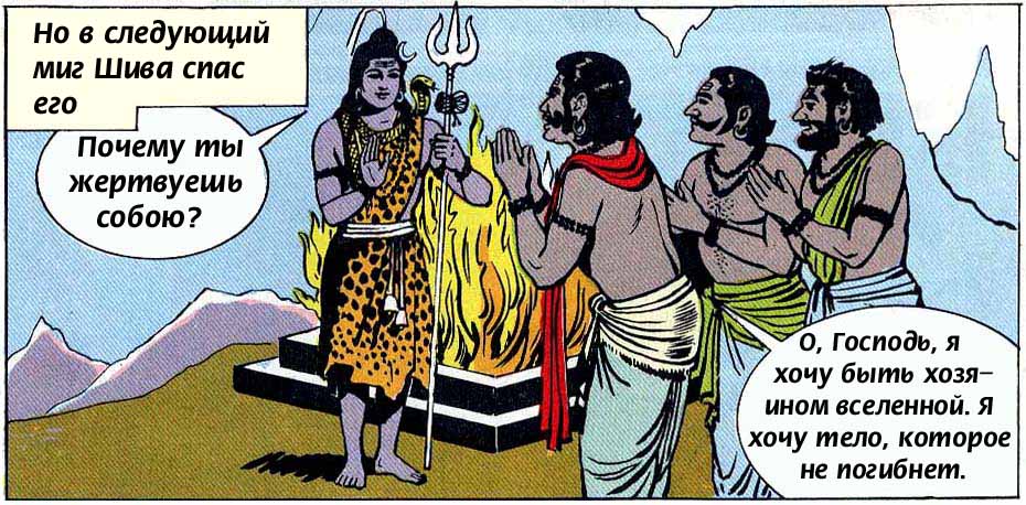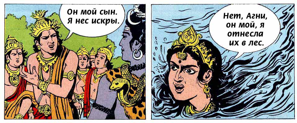 - Вернись! Без тебя мы не можем возносить жертв. - Я вернусь, - обещал Агни,- если вы дадите мне бессмертие. - Ты никогда не умрешь!- обещали ему боги от имени Брахмы.