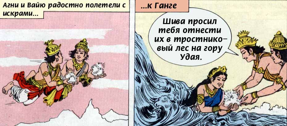 Мольба эта не на шутку напугала Агни, сообразившего, что вместе с пламенем, возносимым за богов, он иссякнет и утратит жизнь. Убежал Агни от богов и скрылся в вечных водах, великодушно давших ему п риют.