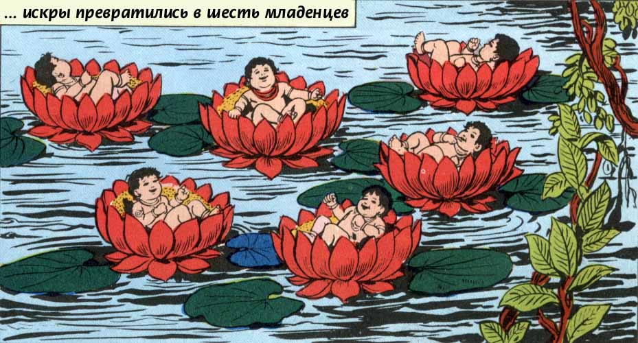 Проклял с тех пор Агни предательницу и все ее бесчисленное потомство. С тех пор рыбы утратили речь и молча корчатся на сковородах или кипят в котлах, сжигаемые многоликим Агни.