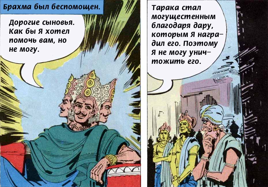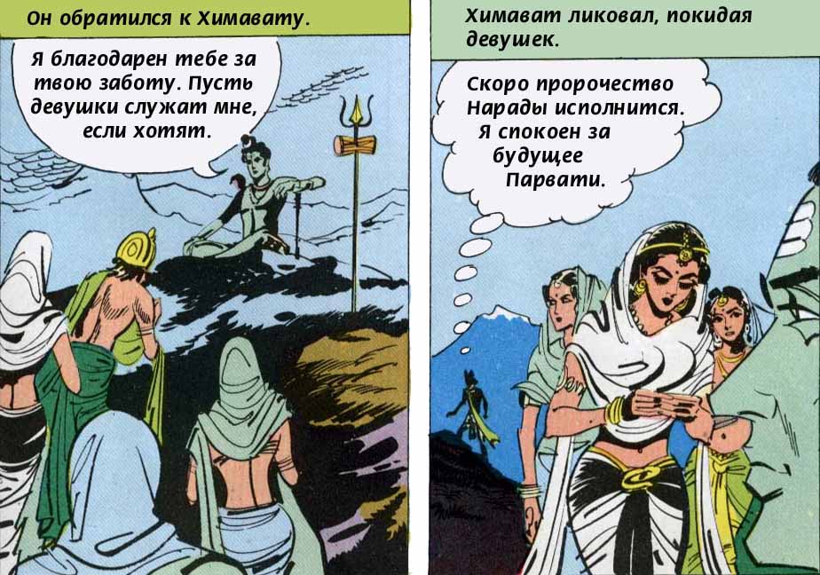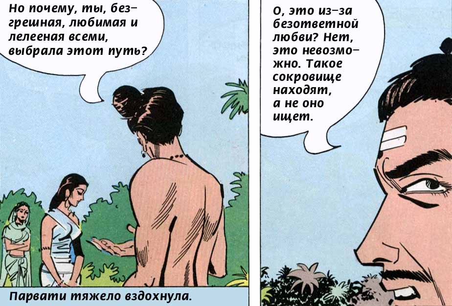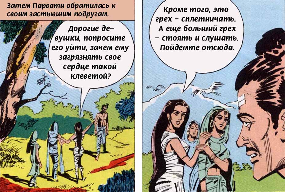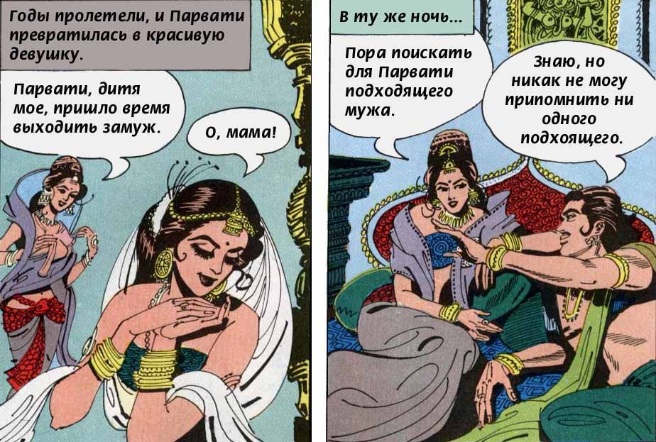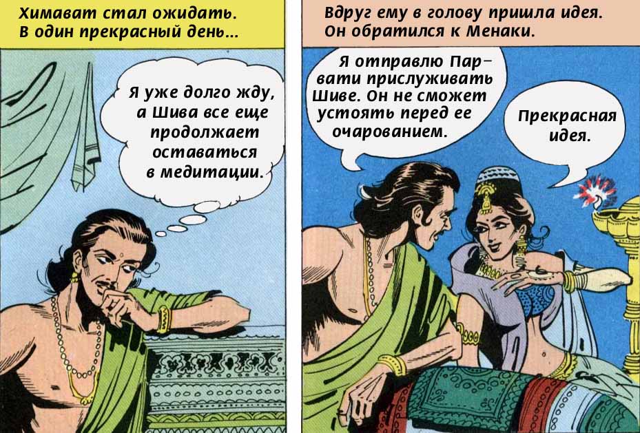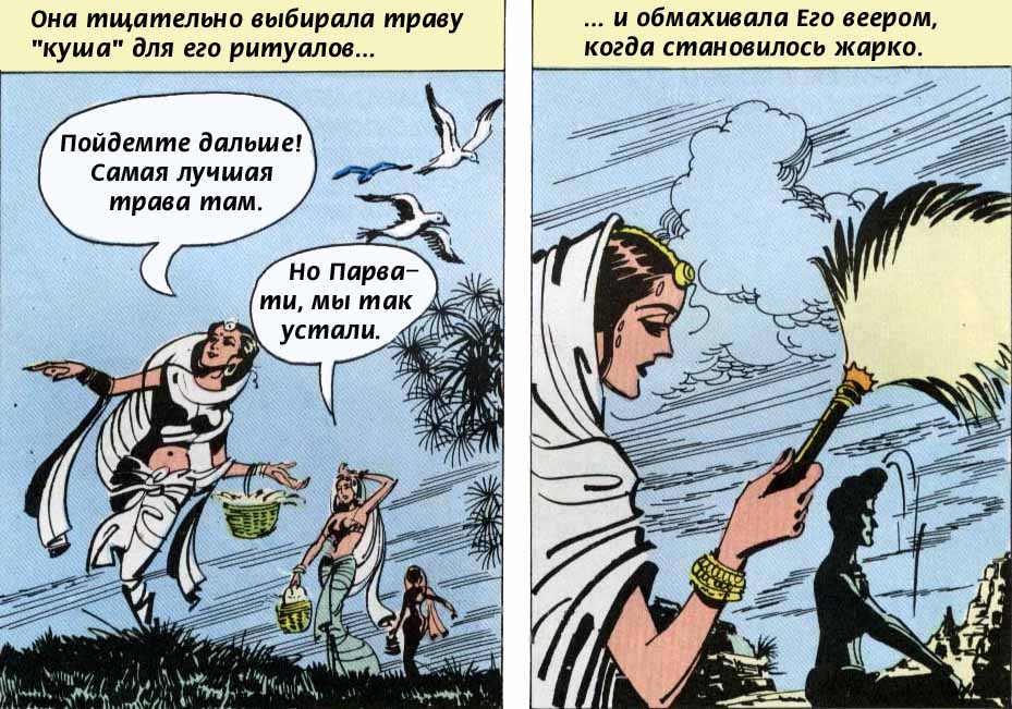 (Здесь есть некоторый юмор в повествовании: дело в том, что именно Агни является богом огня и жара. И то, что ему невыносимо горячо держать семя Шивы, должно означать вторичность всех полубогов и стихий по отношению к Единому Богу.)