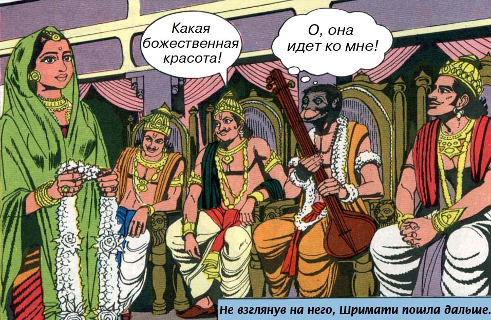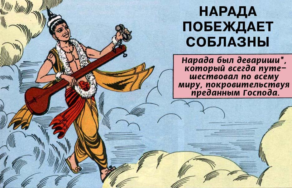 *) Девариши - буквально: "Божественный мудрец". "Божественный" в данном случае следует понимать не как эпитет, а в буквальном смысле: мудрец, мудрость которого происходит от Бога и равняет его с богами, ангельскими существами. Кроме того, Нарада имеет Божественное происхождение.