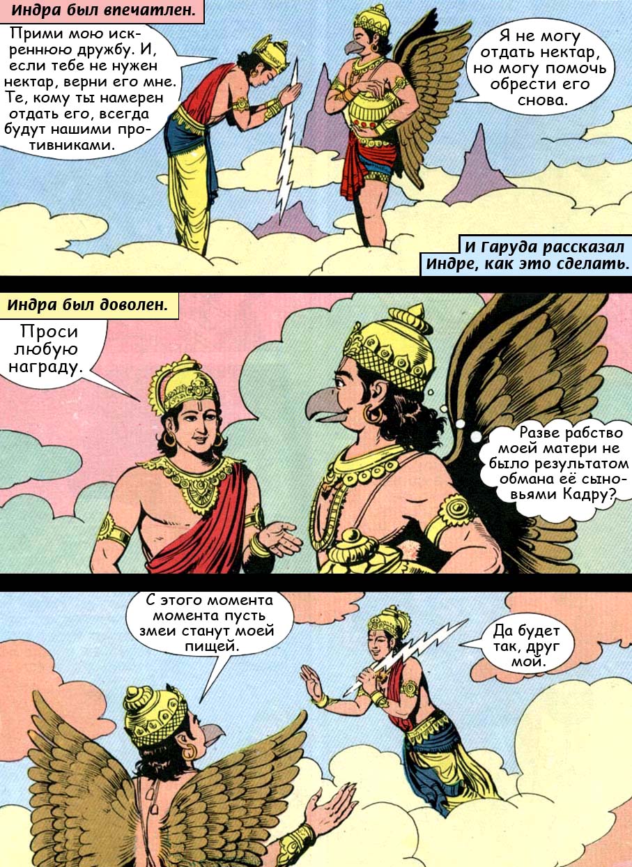 - Да будет так, - сказал Индра, губитель данавов, и последовал за Гарудой, то и дело повторяя. - Как только ты поставишь нектар наземь, я тотчас же его заберу.