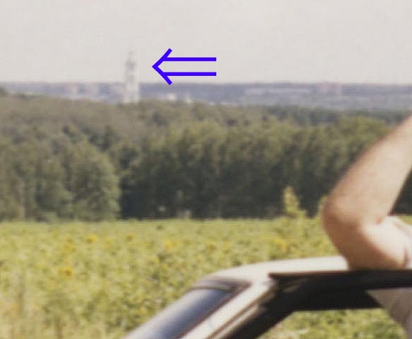 Непросто разглядеть, ради чего сделан этот снимок Монастырь - на территории Арзамаса-16, въехать туда нельзя. Но Витя фотографирует, запечатлевая монастырскую колокольню мелко на краю снимка.