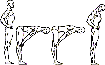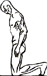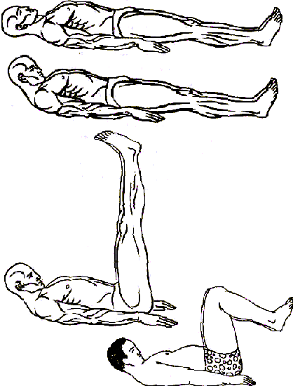 - Через неделю практики это ритуальное действие становится самым простым из пяти. Когда вы вполне его освоите, старайтесь при возвращении в исходное положение прогибать спину назад как можно больше, но не за счет предельного излома в пояснице, а за счет расправления плеч и максимального прогиба в грудном отделе. Не забывайте, однако, что ни таз, ни колени при этом пола касаться не должны. Кроме того, введите в упражнение паузу с максимальным напряжением всех мышц тела в обоих крайних положениях - при прогибе и при подъеме в "угол".