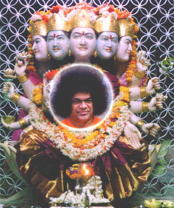 Сатья Саи представляется пребывающим в сердце пятиликой Веда Маата